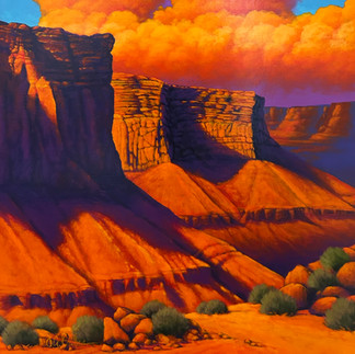 Joe A. Oakes was a curious and observant child that began drawing at age five. He’s been painting full time since 2008 and like other artists, had many previous occupations including, substitute teacher, art consultant and graphic designer. Oakes has survived cancer and the loss of a child and used these life changing events to propel his art career forward. His landscapes burn with the first brilliant seconds of sunrise and the last fiery moments of sunset. Expressing those feelings through the use of bold, vibrant highlights and shadows of violet hues is his signature. His work offers a meditative sense of calm and happiness, with a profound reverence for the mountains, canyons and valleys of the West and Southwest. Oakes holds a BFA from CSU, Fullerton and resides near Palm Springs, California.